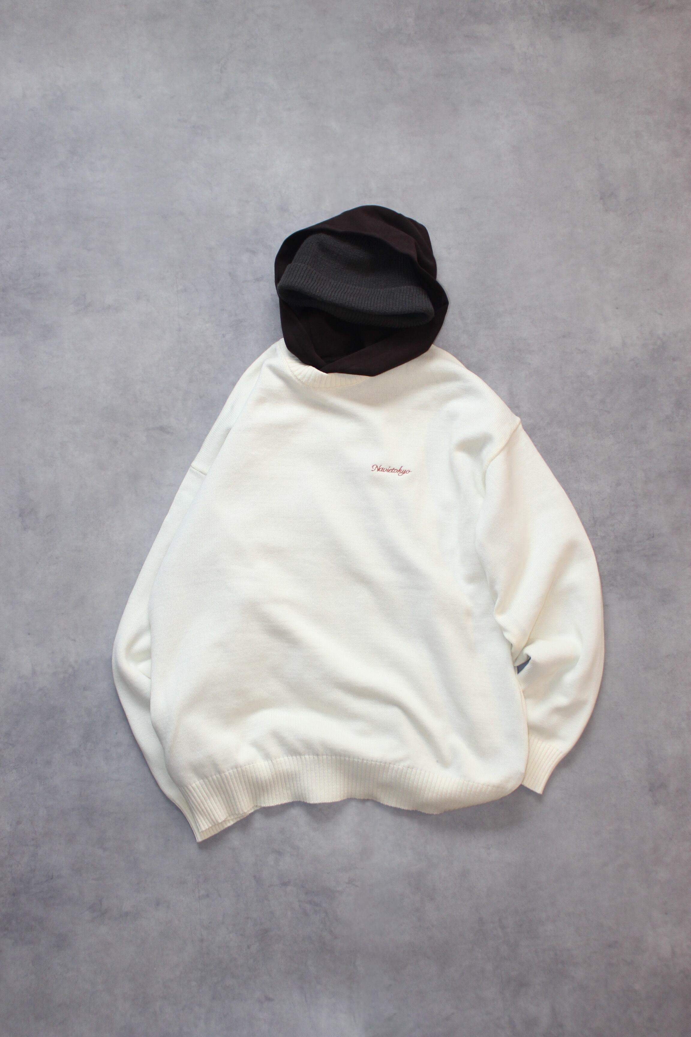 超ドが付くほどシンプル且つ少しラグジュアリーなニットが欲しくて作りました。基本、着膨れしたくないので、内側に着込んでいくスタイルをしているため、ハイゲージで薄手のニットとなっています。真冬は寒いので、下と上に着込んでください。