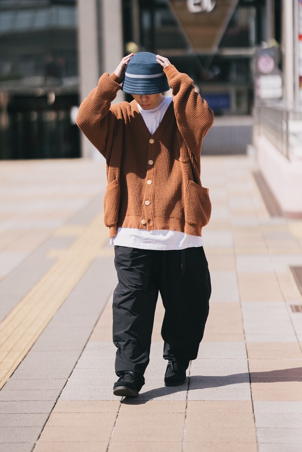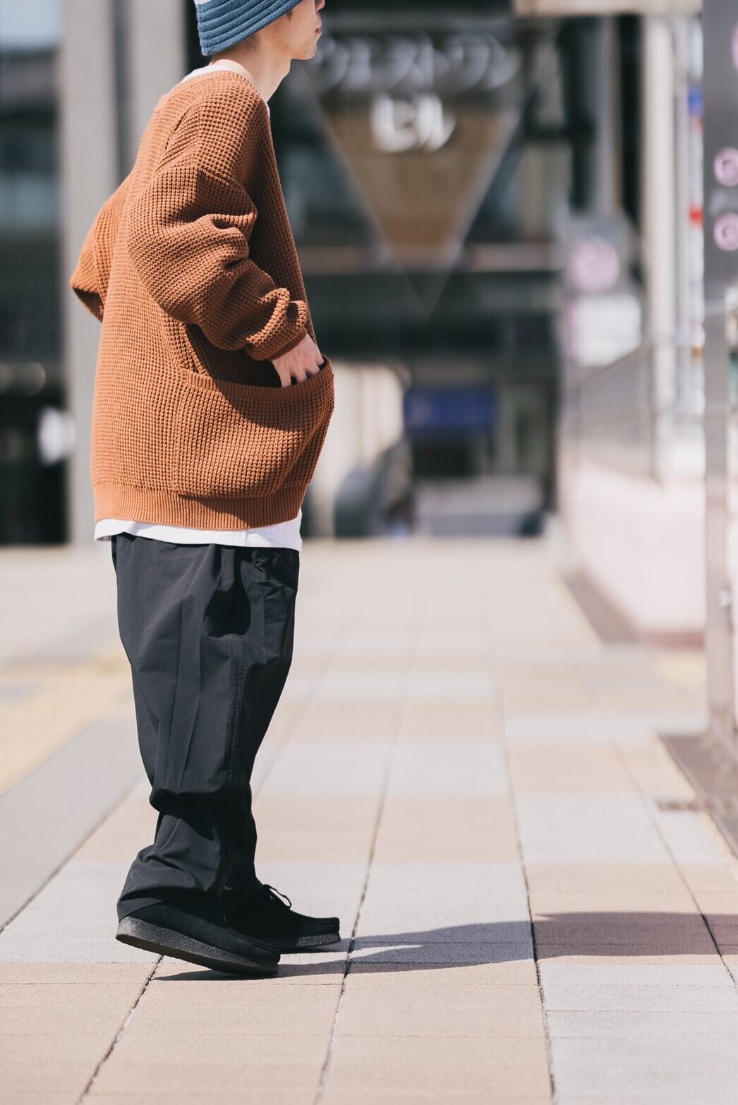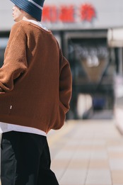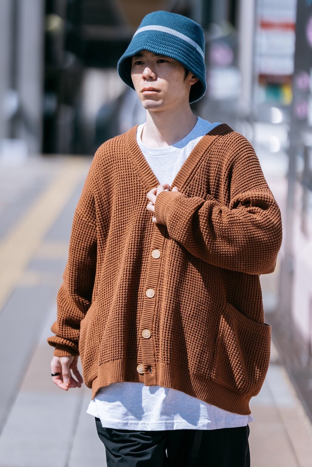 ざっくりルーズゲージに編み込んだオーバーサイジングのカーディガン。胸や両サイドに配置したポケットなど機能性も備えています。