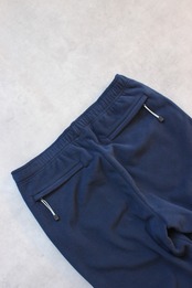 やりすぎない程度の太さは担保しつつ、裾とウエストにはドローコード付きで調整可能。個人的に嬉しいのがバックポケットが左右両方とも付いているポイントでしょうか。こちらもジャケット同様、ファスナーの取っ手にはロゴの刺繍糸と同色のパラシュートコードを使用。シンプルでソリッドな雰囲気なので差し色として効いています。